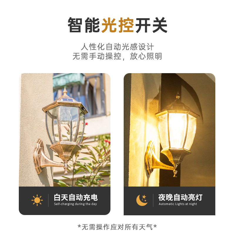 Outdoor wall light waterproof solar garden light outdoor Chinese super bright exterior wall light garden villa balcony gate light