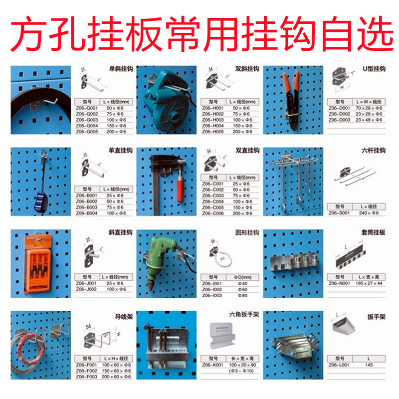 Bench hanger sleeve hook Five gold accessories tool hooks square hole hanging plate Hole hole plate hook Single inclined hook