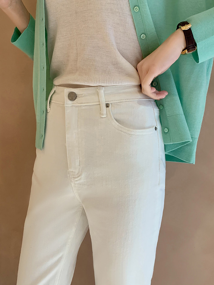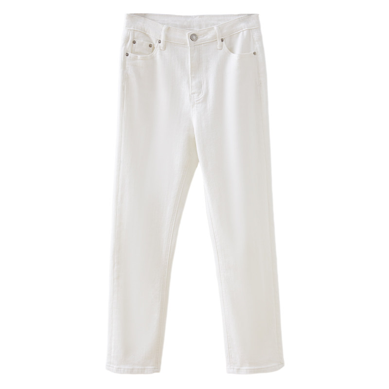 (spot) Personality Baiji ~ white straight jeans women relaxed leisure 2021 new high waist nine pants