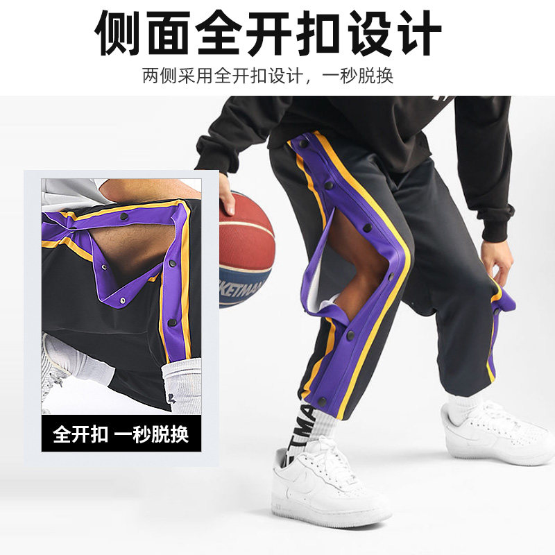 Button-up pants men's basketball full open buckle second off summer thin section American side sports training button pants boys and girls