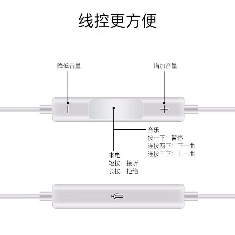 Headphones apply Huawei typec Entrance Ear Style Xiaomi Honor High sound quality flat general 3 5 phone line control headphones