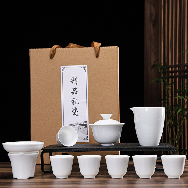 Fang Sheteh defied white porcelain suit Home Living room minimalist tea Kung Fu tea Kung Fu tea Tea Office Will guest cover Bowl Tea Cup-Taobao
