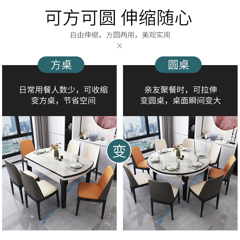 Italian light luxury marble dining table Modern simple telescopic dining table Household telescopic round table Small apartment square table