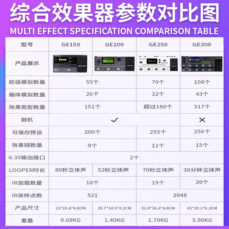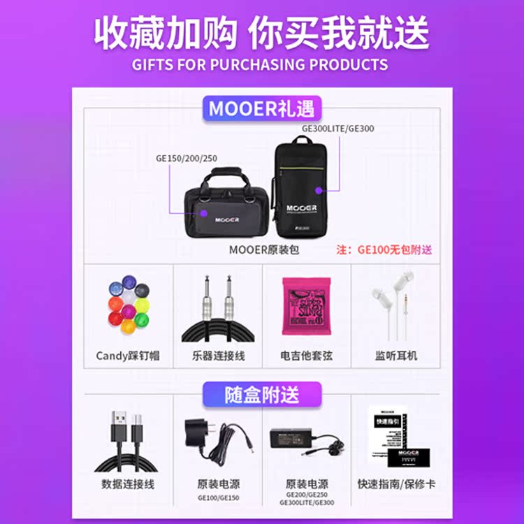 MOOER GE200 250 Electric Guitar Integrated Effects Speaker Analog Accompaniment Special Drum Machine lR Sampling