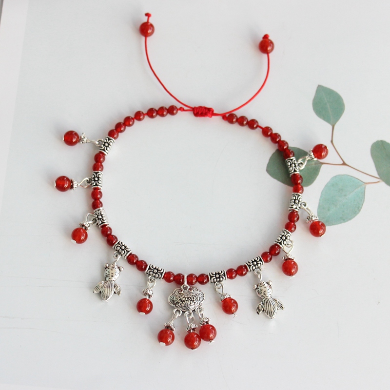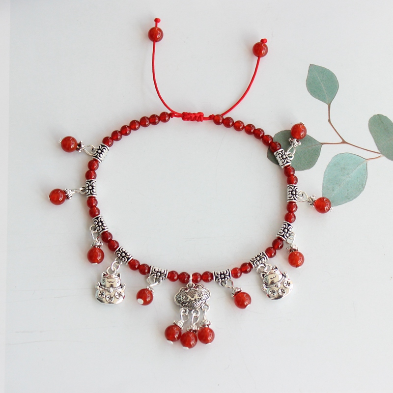 Red Agate small fish (Anklet) Red Agate lucky cat (Anklet) Red Agate Maple leaf (Anklet) Red Agate four-leaf clover (Anklet)Red Agate Ruyi(Anklet) Red Agate small fish bracelet