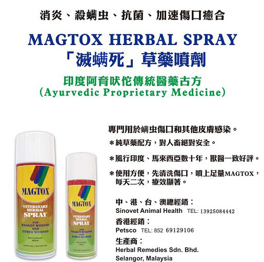 Spot HK purchase Indian grass tyrant Magtox pet cat and dog skin disease purulent rotten meat magtox spray 200ml