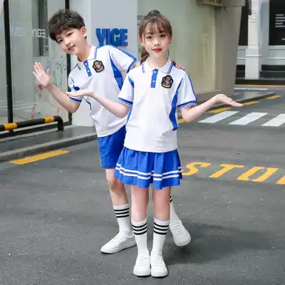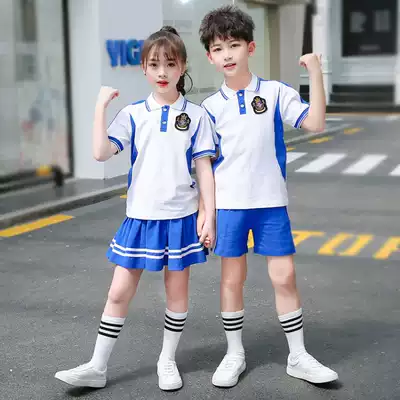 Kindergarten garden clothes summer clothes pure cotton blue and white school uniform set Primary school summer short-sleeved class clothes Children's sports clothes
