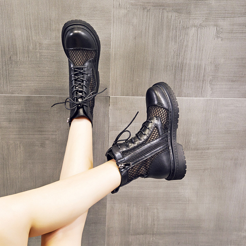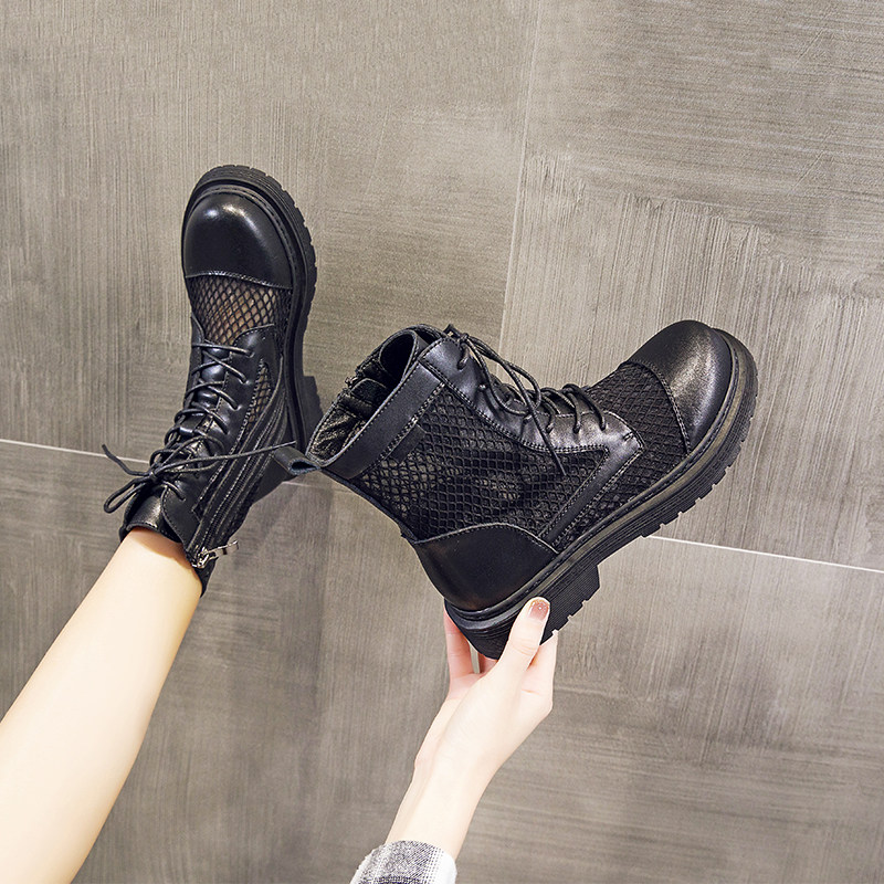 Web Martin boots summer thin female shoes breathable hollow net boots in 2022 new black thick sole boots