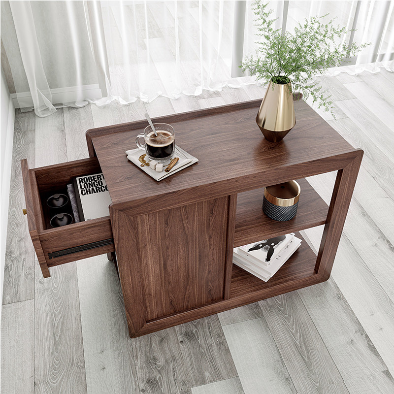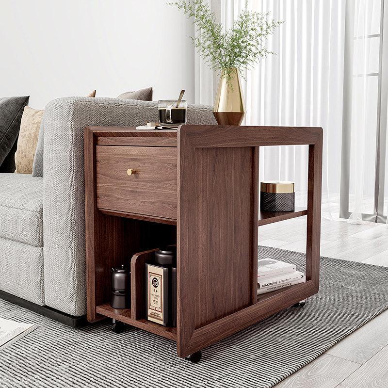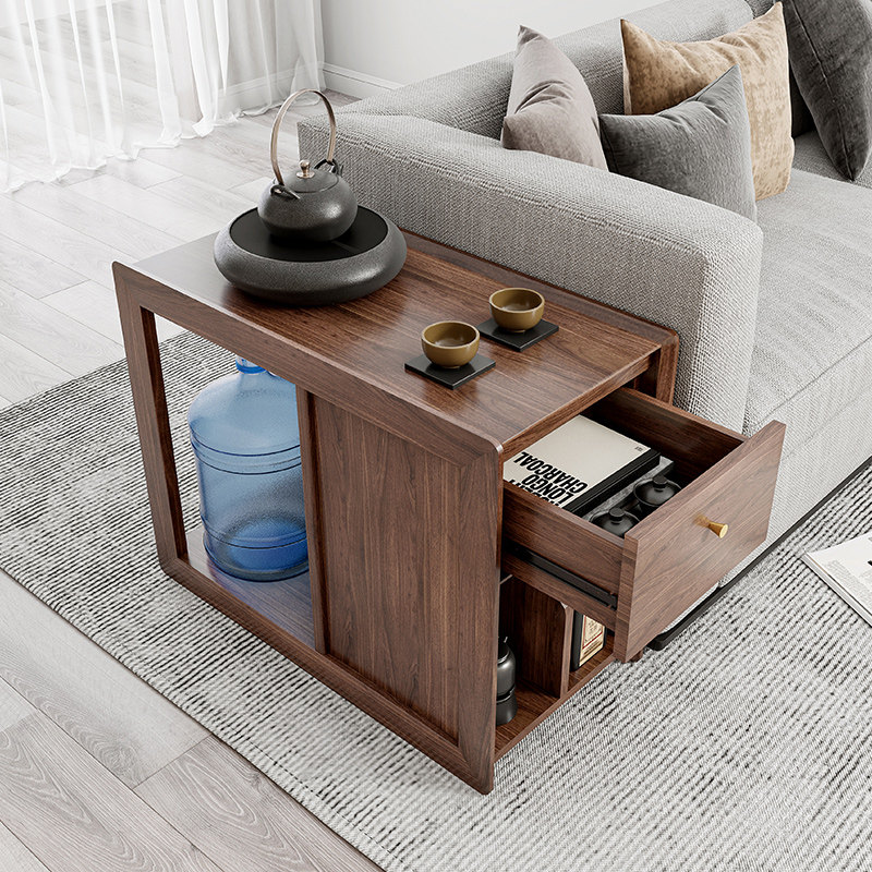 Solid wood Nordic edge a few sofa storage Armrest Cabinet Mobile Teatai Kongfu Tea Table Small Family with drawer corner a few