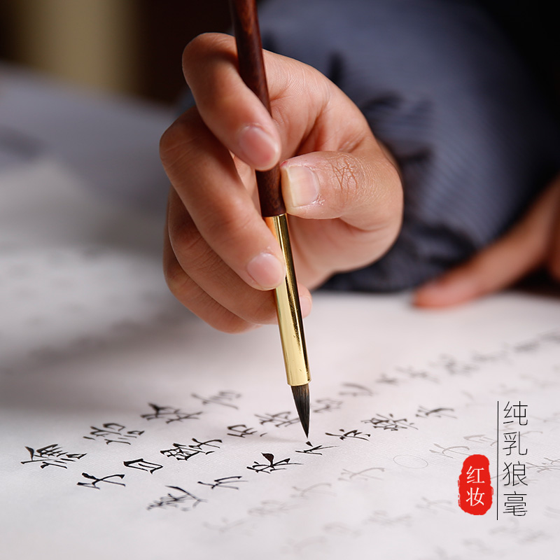 Si Zhi Red Makeup Milk Wolf Milli Small Kai Brush Set High-grade Professional Grade Purple Milli Brush Small Calligraphy Beginner Special Hard Milli Scribble Pen Practice Words Adult Hook Thin Gold Body Small Letter Pen Single Branch