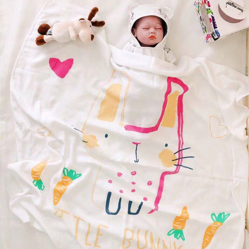 Baby bath towel bamboo fiber cotton double-layer gauze children's towel is soft absorbent kindergarten cover blanket summer thin