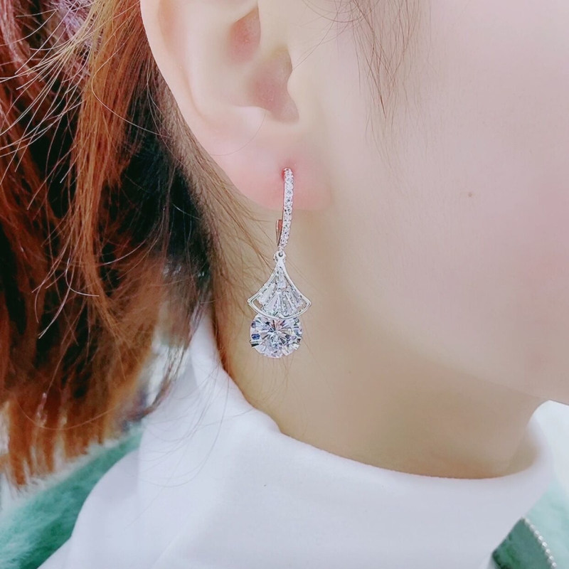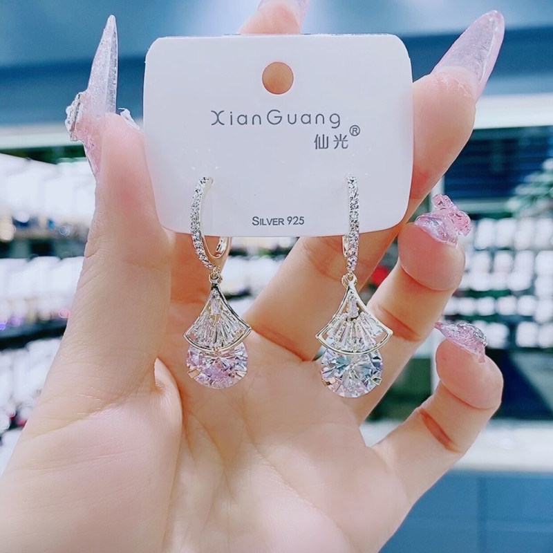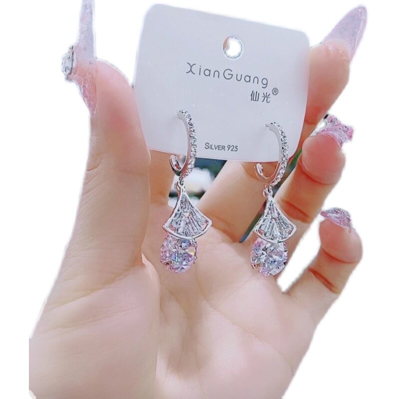 Small fan earrings small and delicate 100 lap crystal earbuts super shiny 2021 new pure silver pin personality temperament earrings