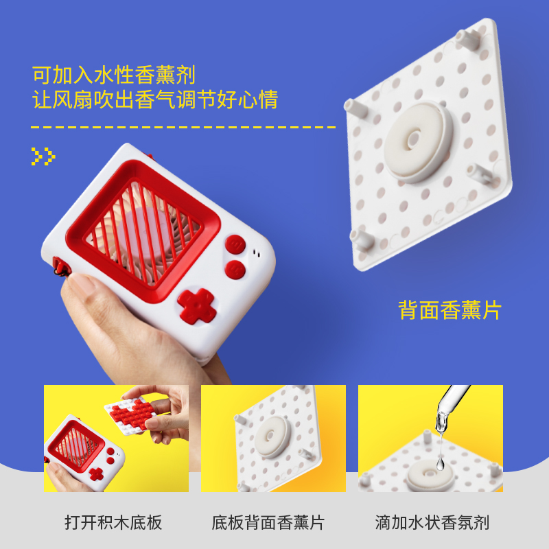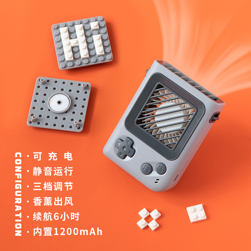 Mini small fan hanging neck Handheld portable small electric office Desktop table Desktop Mute Student Dorm Room Cute Strong Wind Powerful rechargeable console Building Blocks Usb