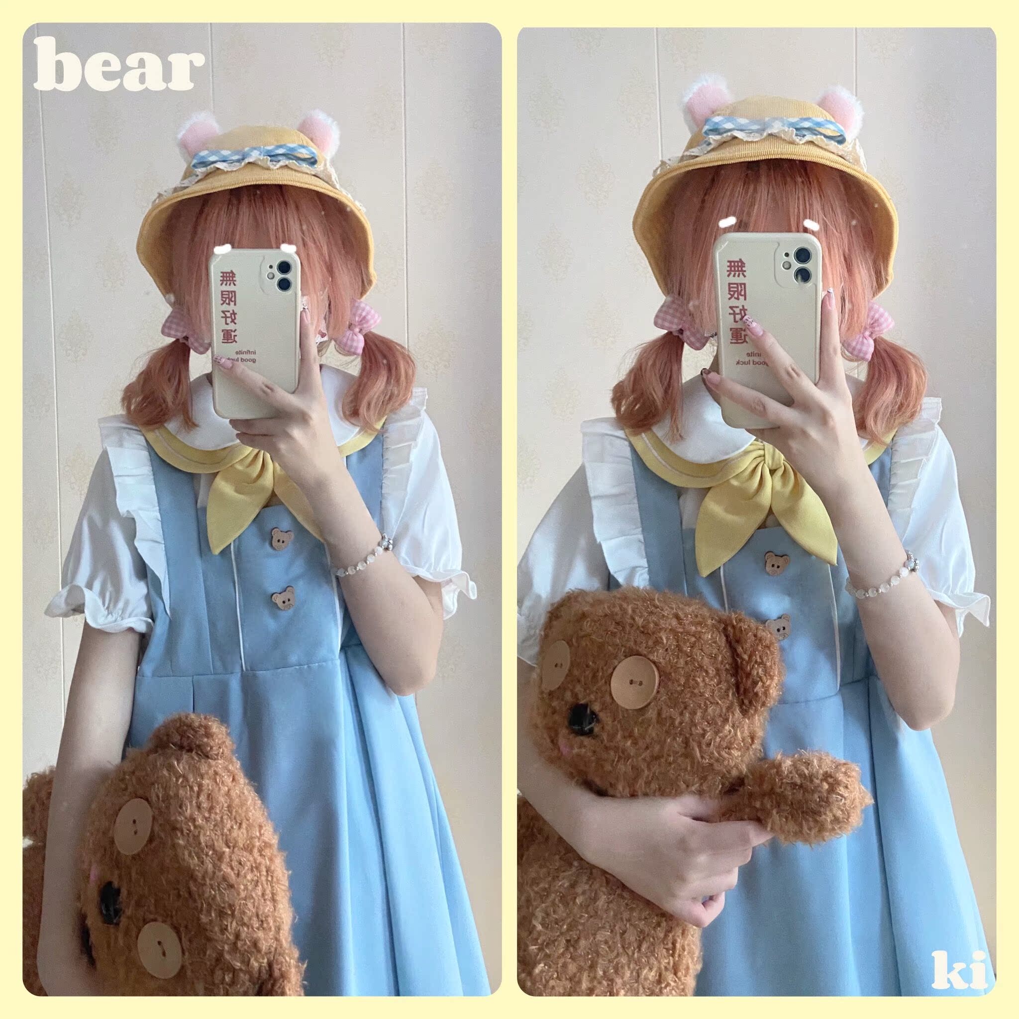 (Deposit) Bear Sushi Japanese original summer cute milk skirt shirt JK student uniform