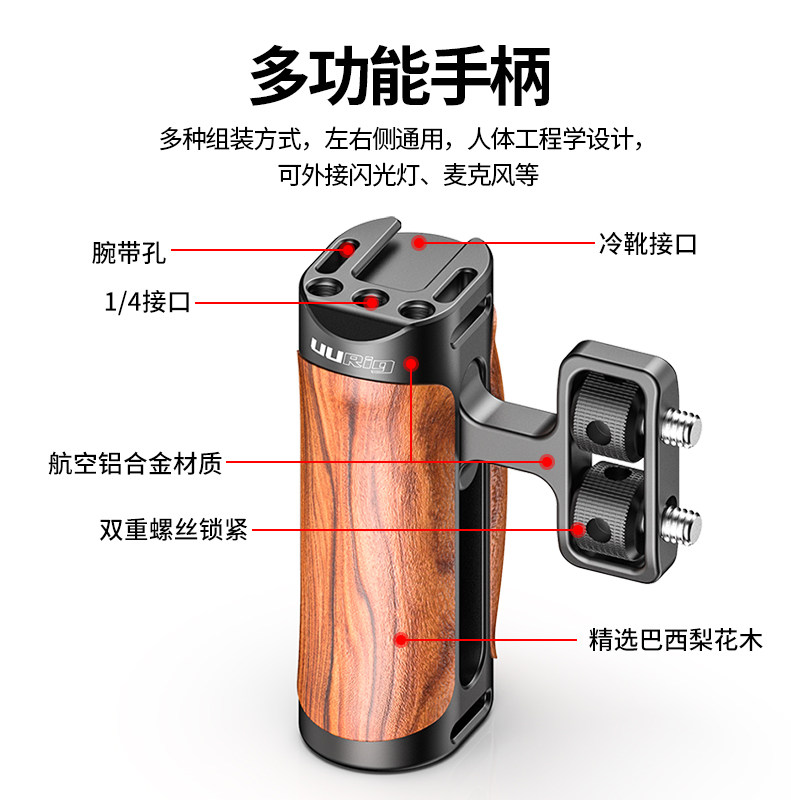 UURig R075 Camera Rabbit Cage Wooden Side Handle SLR Micro Single Extended Shooting Handle vlog Set Accessory Is Suitable for Fuji Sony A7M34 A6400 A7C Wood Grain Photography Handle