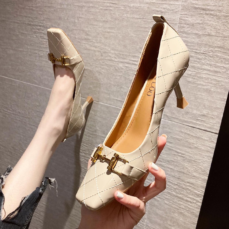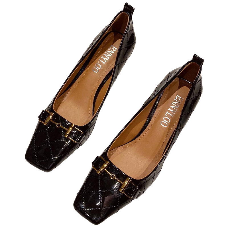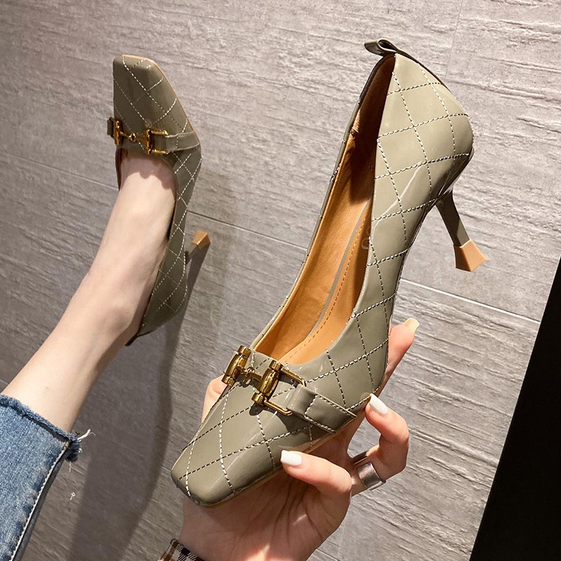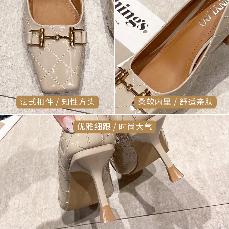 New strong push~French temperament square head high-heeled shoes women's stiletto commuting all-match patent leather bright leather shallow mouth single shoes women