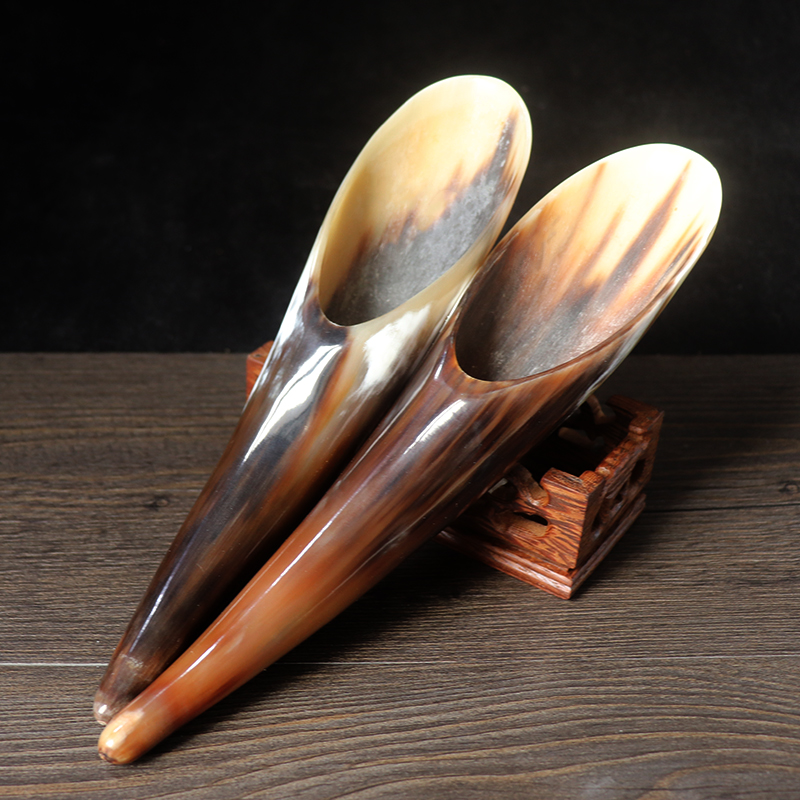 Natural yellow horn scraping tube hand-made smooth tea spoon horn tube health meridian point stick scraping board