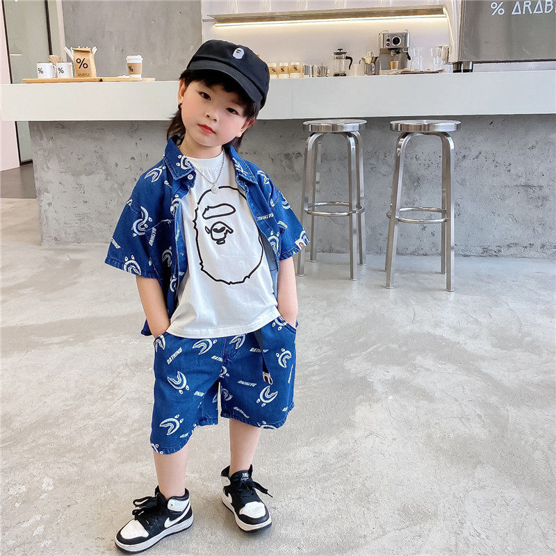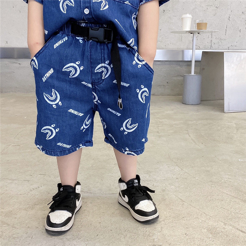 Day-train boy clothes boy blouses female baby Summer tide Shark Jeans Shorts Shorts Short Sleeve Shirt Suit