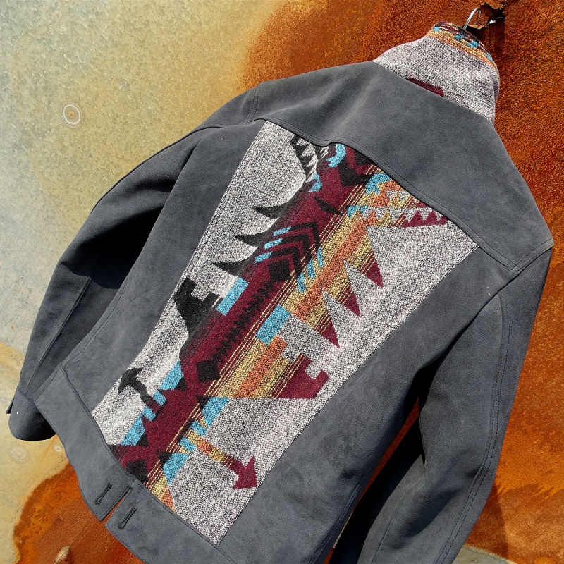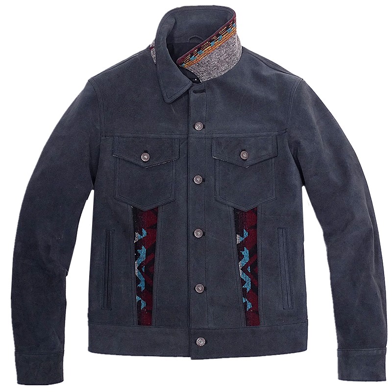 Navajo totem suede cowhide Japanese version 507XX denim men's American retro genuine leather jacket