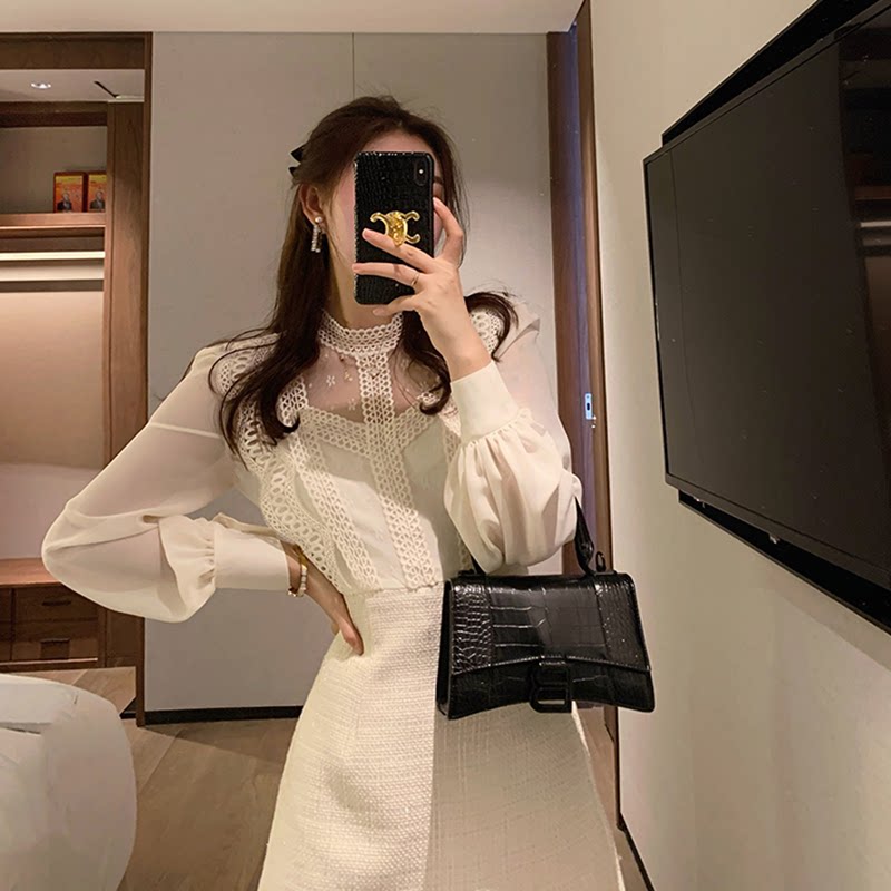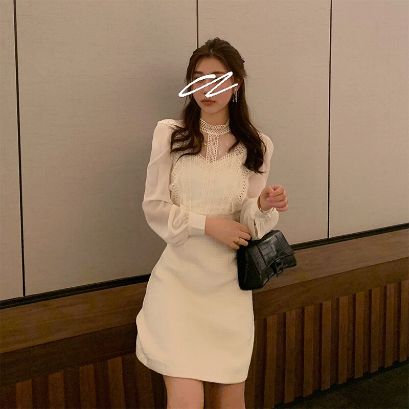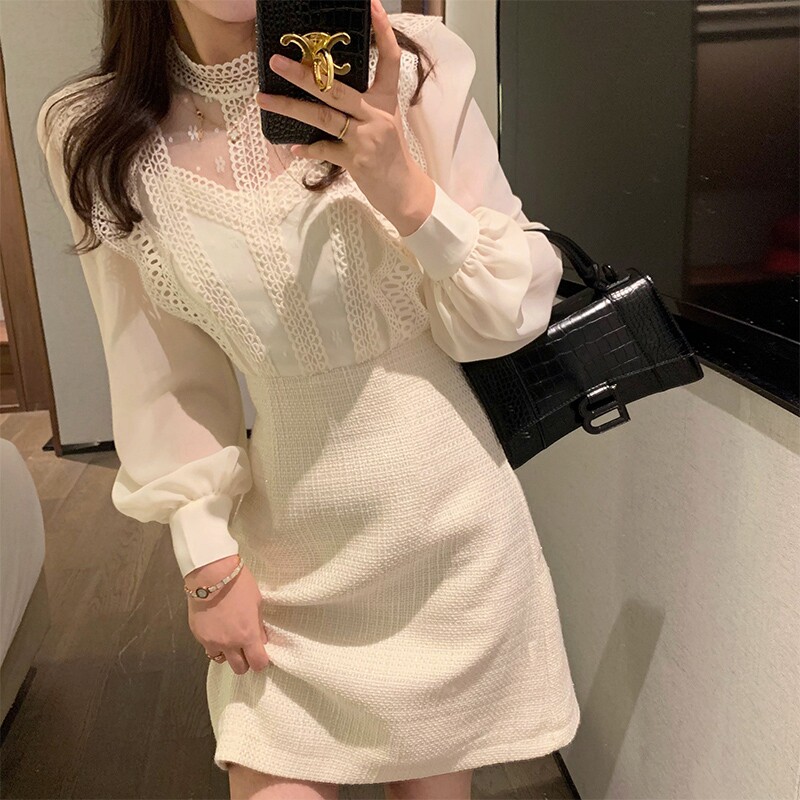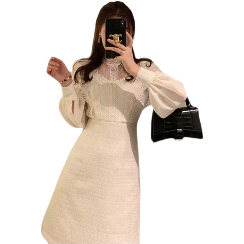 France MAJE2021 Spring Festival Small Fragrant Wind Lace Dress Goddess Van Famous Snowspun Splicing Fairy Dress