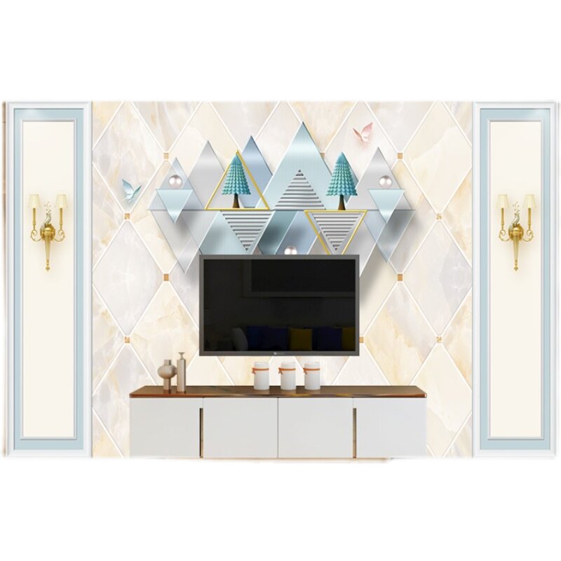 Full house Custom Marble TatXX_ENCODE_CASE_CAPS_LOCK_Off-Shaped Bamboo Wood Fiber TV Background Wall Quick Fit Wall Panel Eurostyle Modern Minimalist Integration