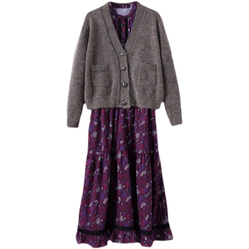 French Maje High round the same paragraph 21 Spring new sweater jacket crushed flower long sleeve foreign dress Two sets of women
