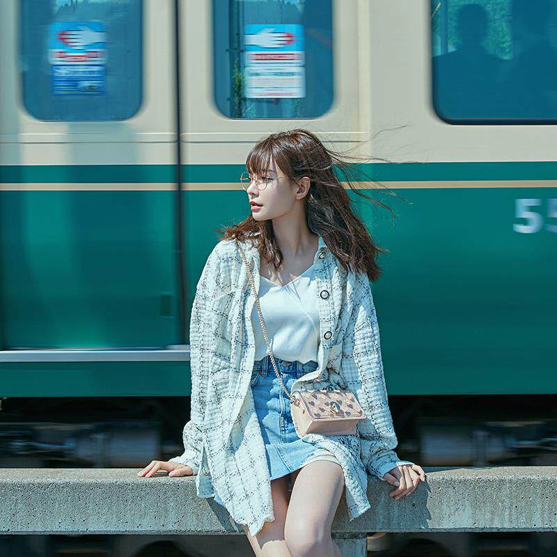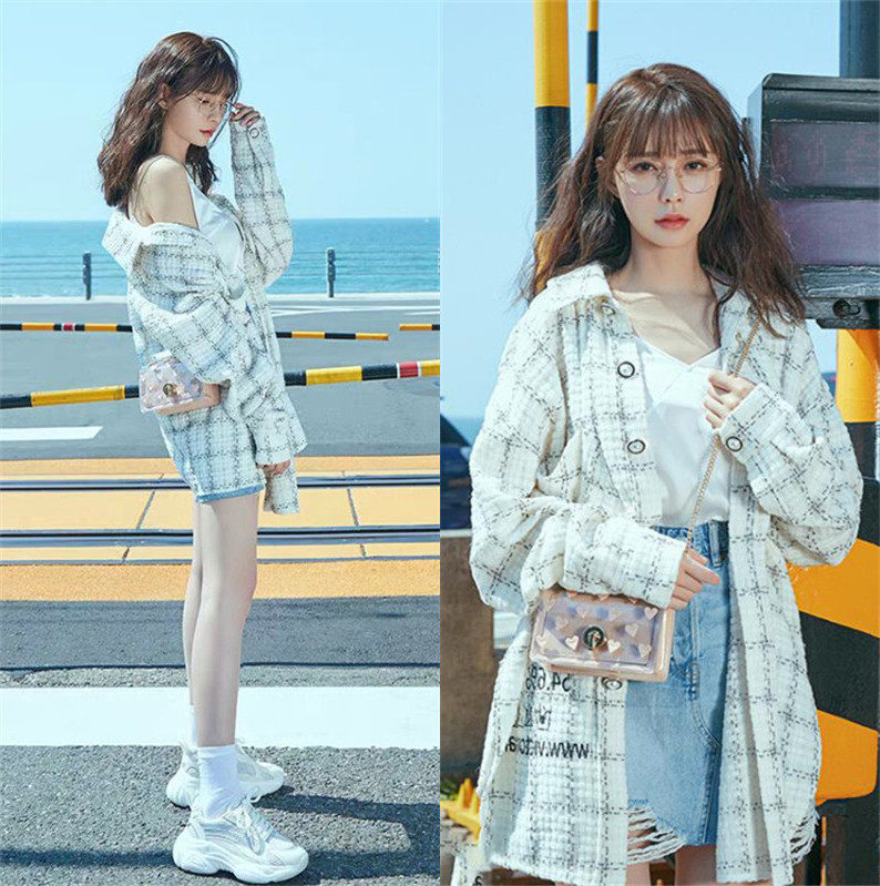 French Maje Shen Mengchen with the same paragraph 2021 Spring new shirt Coarse Flowers Casual Loose Plaid Jacket Woman