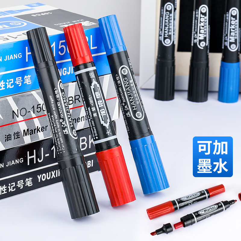 Waterproof quick-drying marker pen does not fade double-headed marker large-capacity art hook line pen black red blue three-color non-erasable refillable ink marker express label bulk pen construction site special