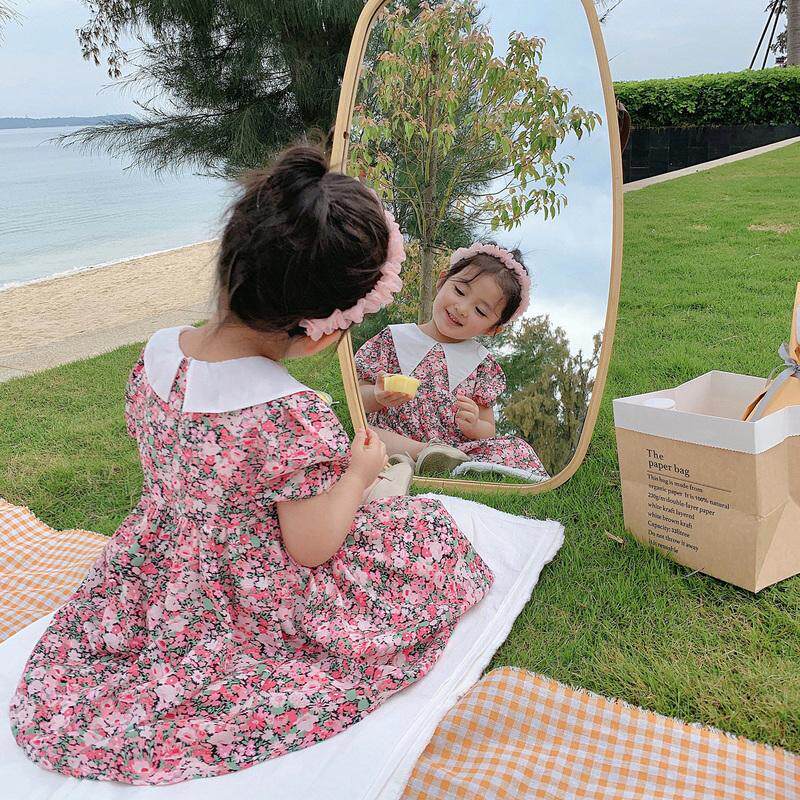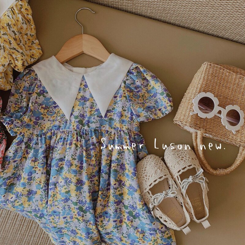2022 new pint girl girl summer dress foreign dress woman baby thin retro breathable sweet and crummy dresses princess dress (