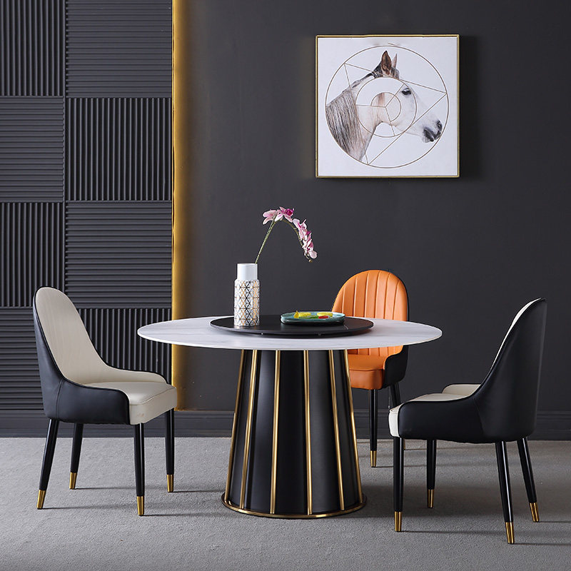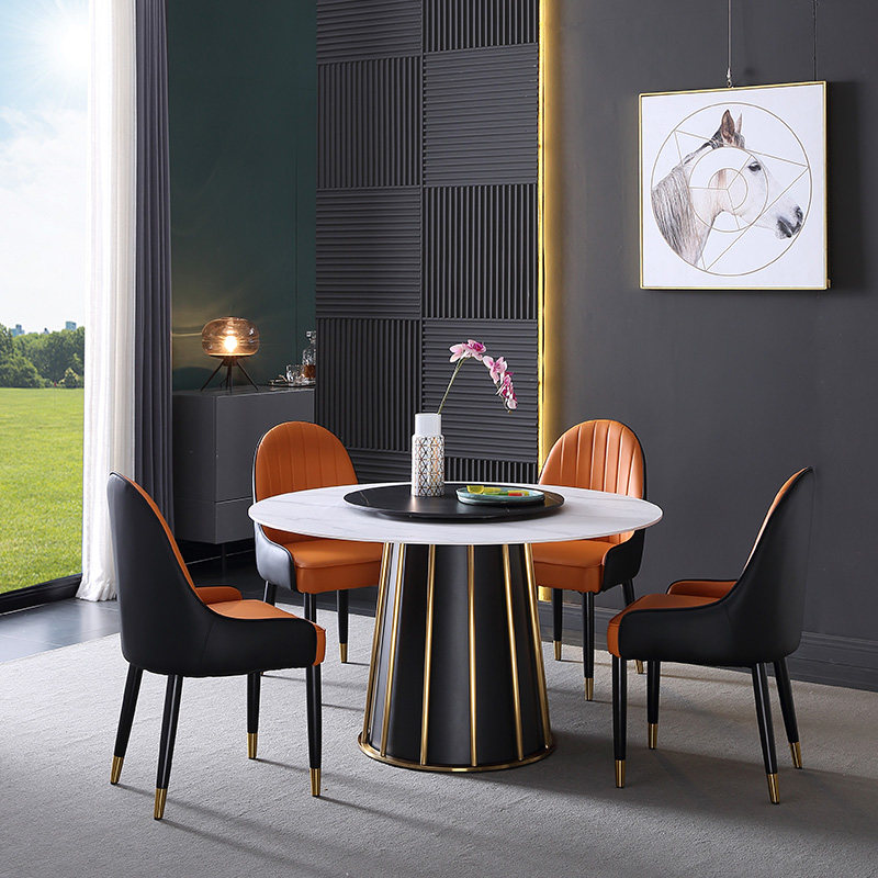Nordic Dining Table and Chair Combination with Turntable Light Luxury Simple Modern Household Size Italian Imported Rock Slab Dining Table