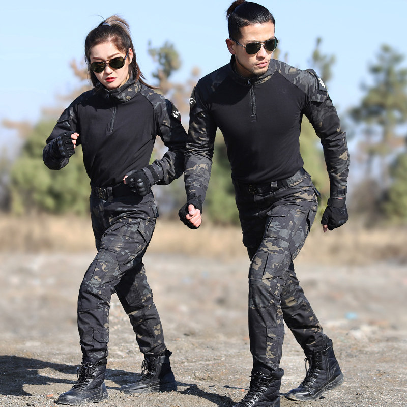 Wolf Stone Outdoor Black Mang Striped Camouflate Suit Men's Spring Summer Dress Long Sleeve Instructor's Frog Suit Tactical Wear Full Wear