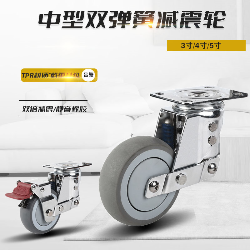 Medium-sized 3-inch 4-inch 5-inch double spring shock-absorbing shock-proof caster universal wheel mute trolley door impact-resistant wheel
