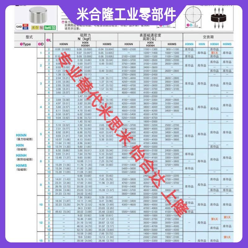 HXNN5 6 8-1 2 3 4 5 6 8 10 12 15 20 25 30 for Mismi round magnet