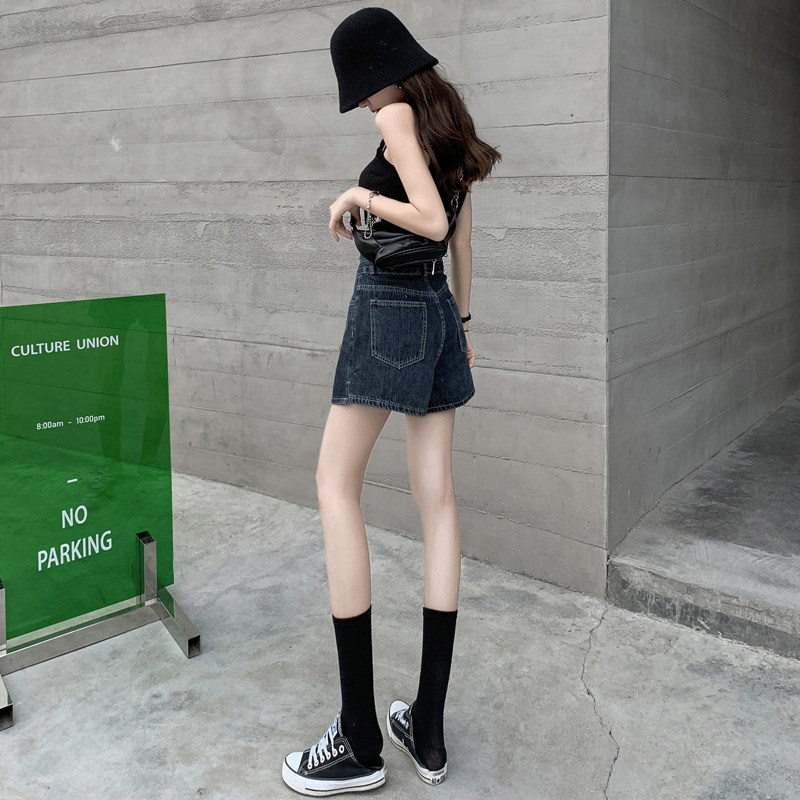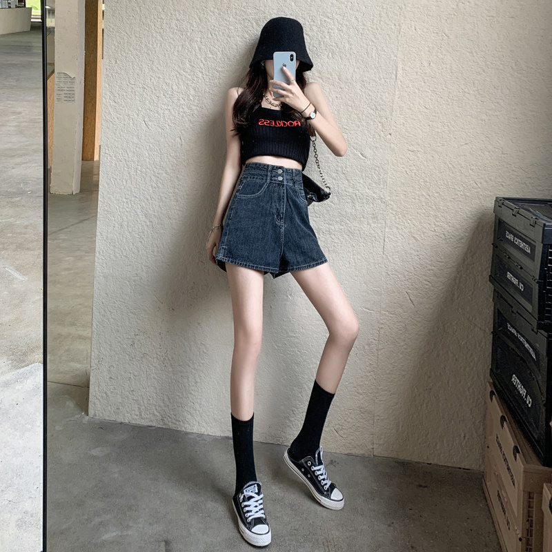 Split denim shorts women's ultra-high waist thin 2021 summer new a-word loose outside wearing hot pants ins tide
