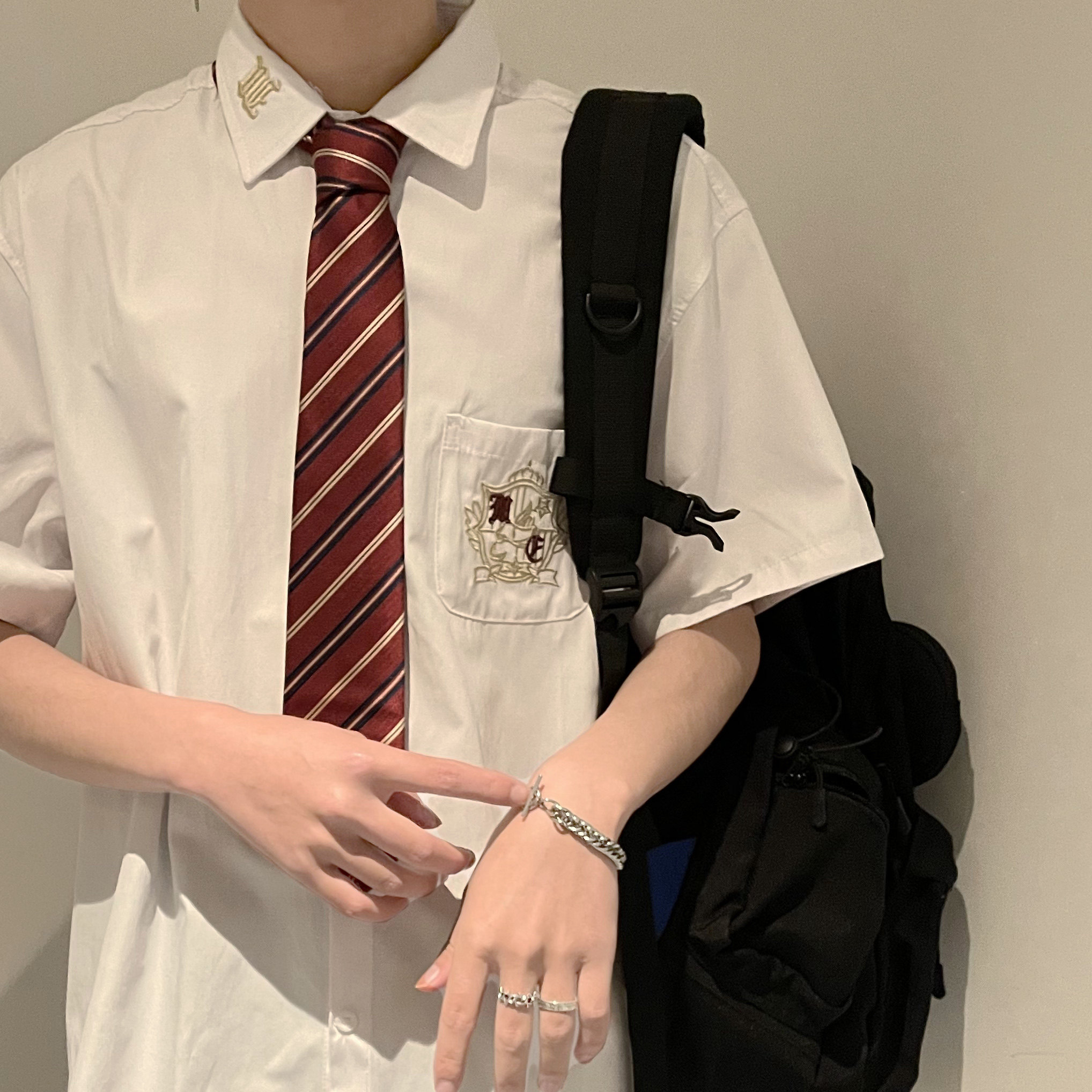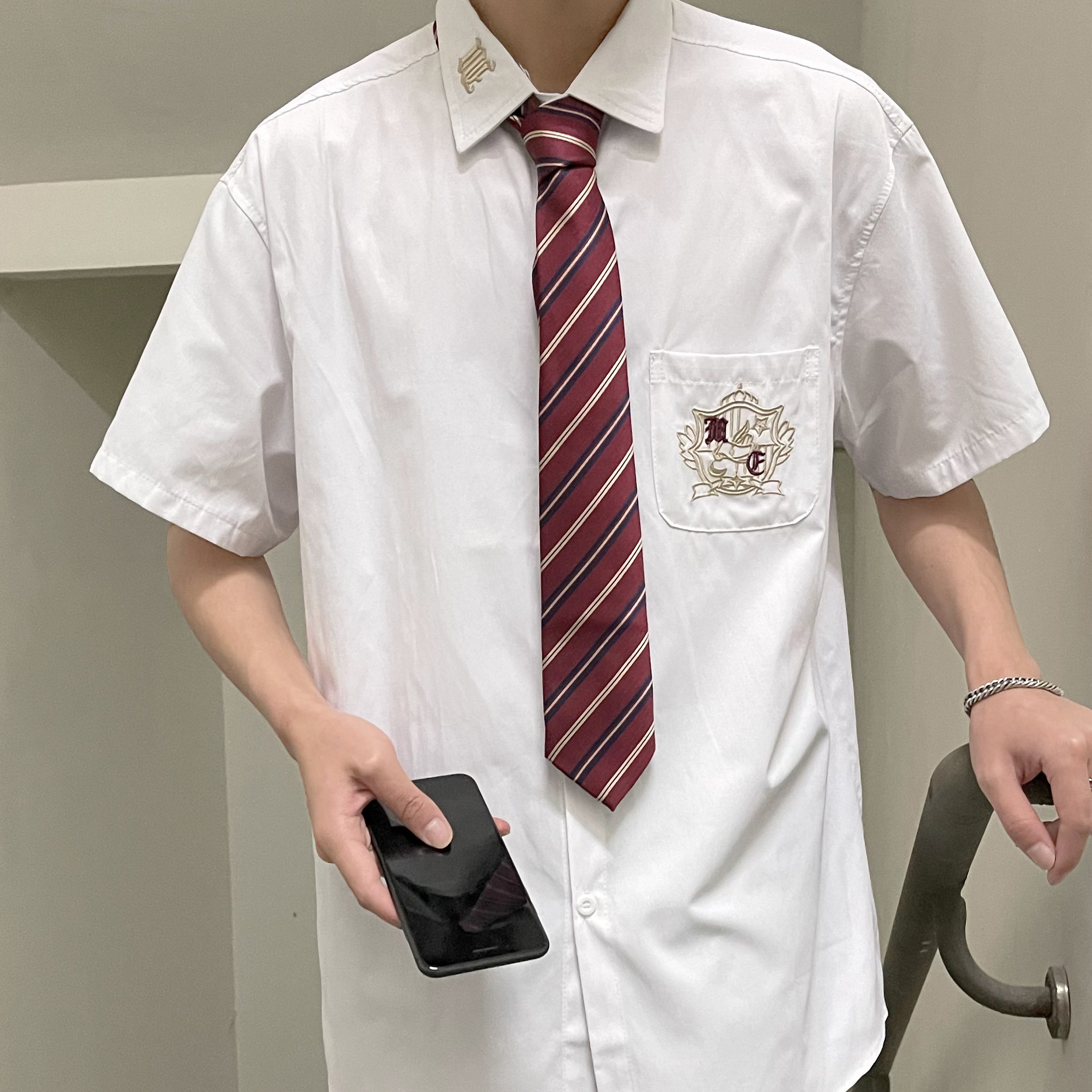 dk uniform male original orthodox short-sleeved shirt embroidery summer shirt half-sleeve student college style jk uniform class uniform