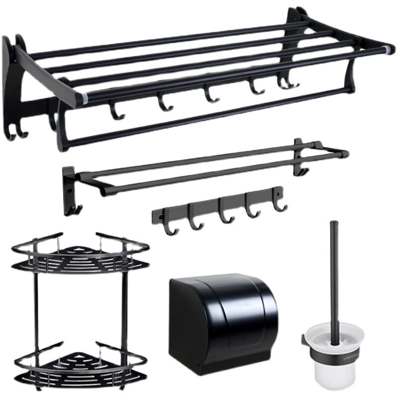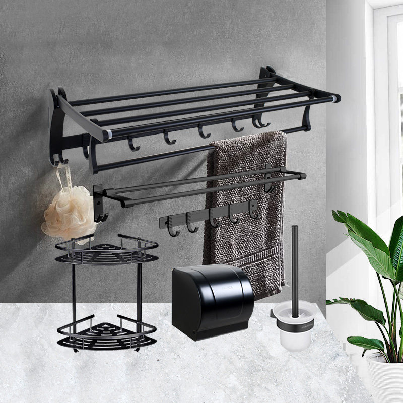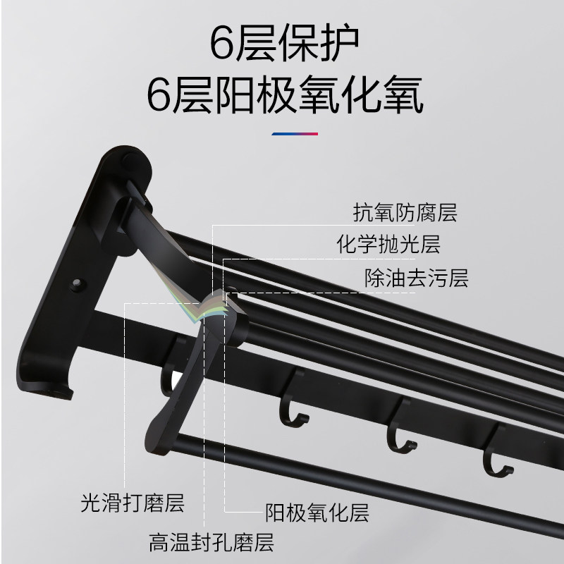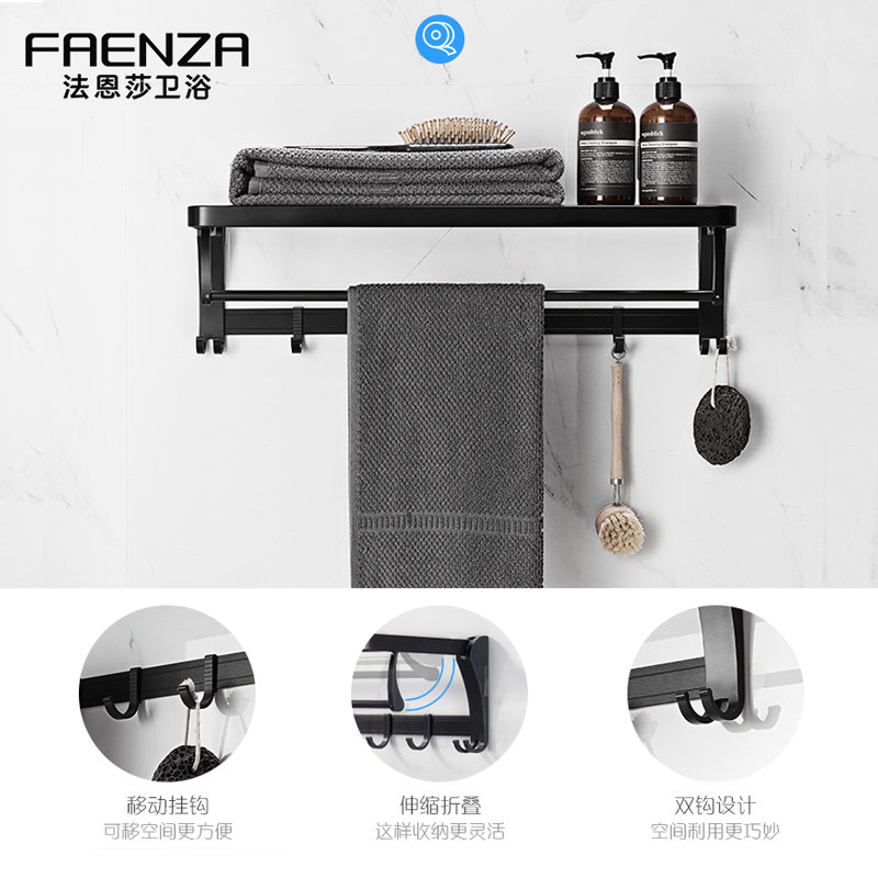 Farnsa Bathroom Hair Towel Rack Free From Punching Black Space Aluminum Hardware Pendant Suit Makeup Room Bath Towels