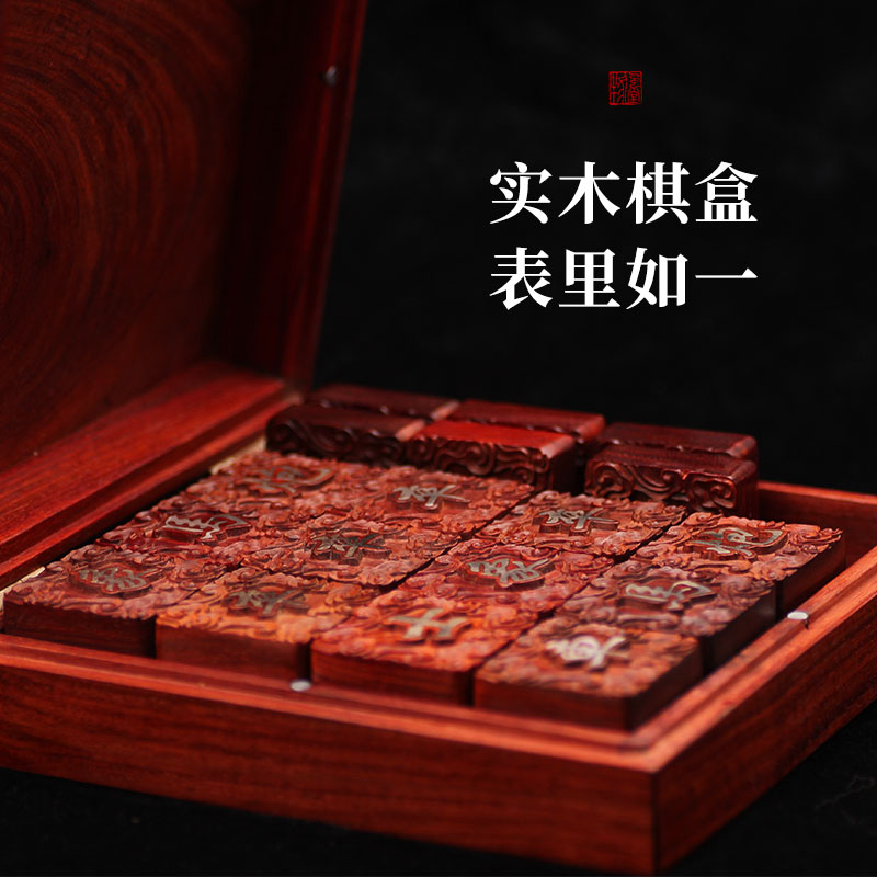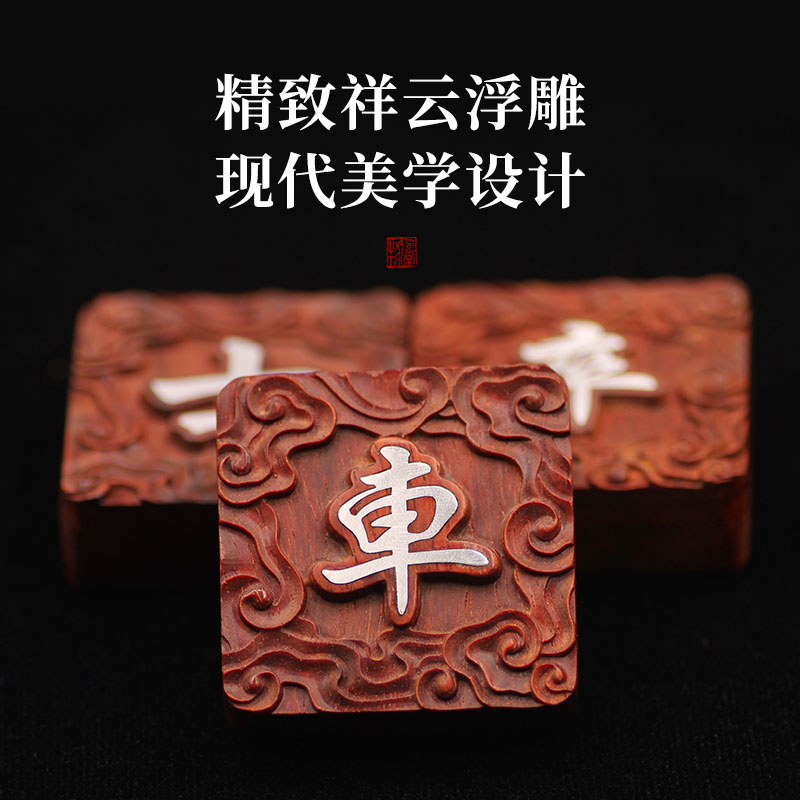 Small leaf red sandalwood solid wood mahogany chess hand inlaid sterling silver copper creative custom high-end gift Chinese chess board