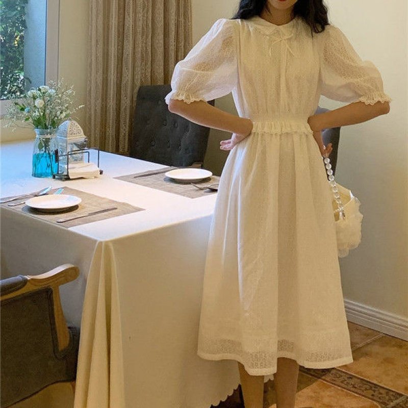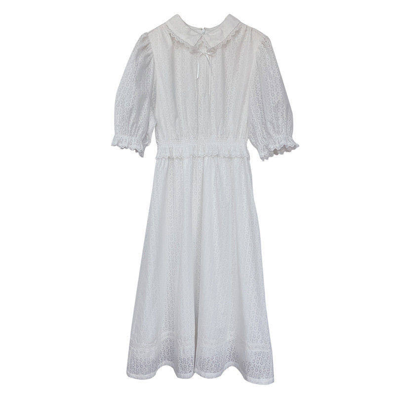 Fa-style retro little fresher teenage girl to collect waist display slim lace palace windy dress with little white dress 2022 new summer