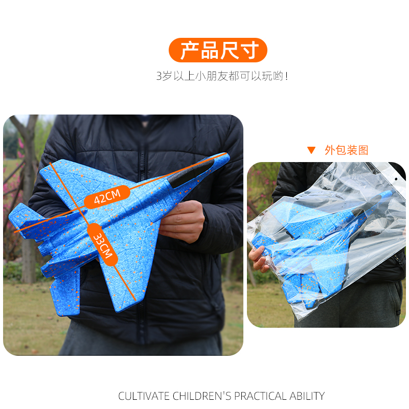 Hand-throwing foam plane large throwing glider spell-insertion model drop-resistant children's outdoor parent-child sports toys