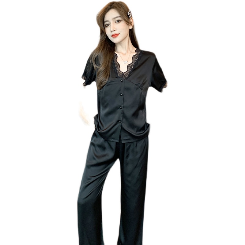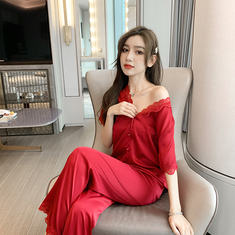White Suit Superior Sleepwear Women's Summer Ice Silk Short Sleeve Long Pants True Silk Net Red Bursting 2022 Home clothes
