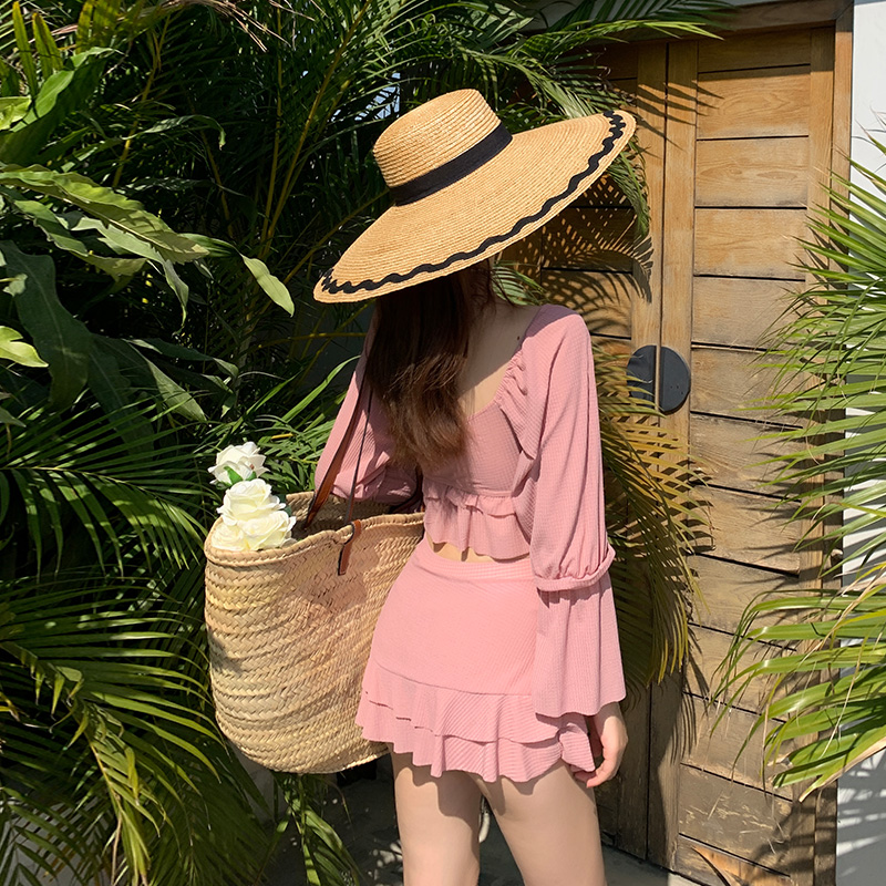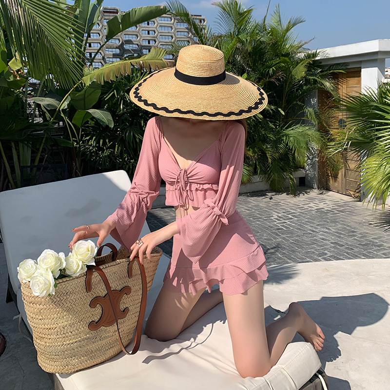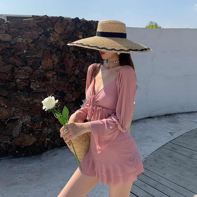 Legal Ins Wind Retro Holiday Two Style Swimsuit Powder Tender White Fairy Skirt Style Long Sleeve Sunscreen Swimsuit Woman