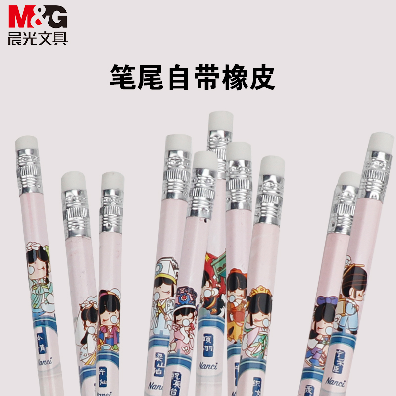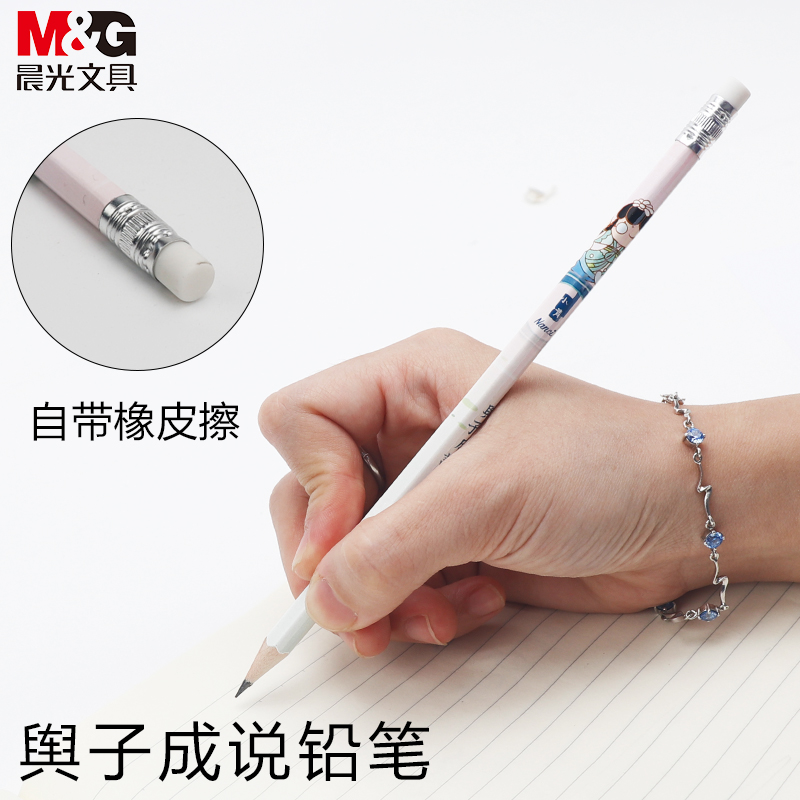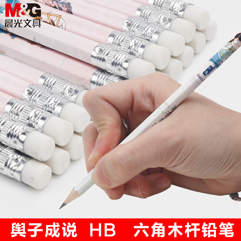 Morning light Nanci and son say HB hexagonal pole pencil with rubber elementary school wooden pole writing pencil lead free poison-Taobao