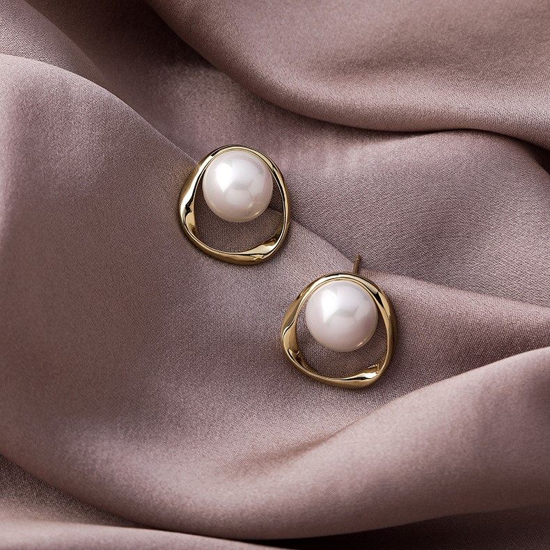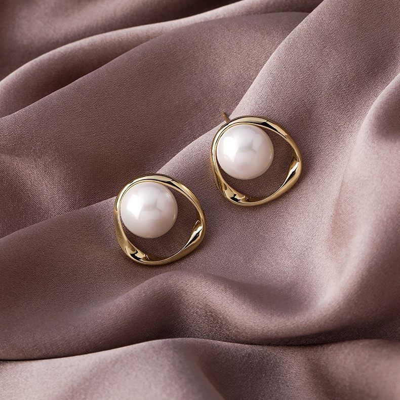 Flow of gold years Ni Ni Zhu lock lock with earrings 925 silver needle pearl stud earrings 2021 new vintage earrings