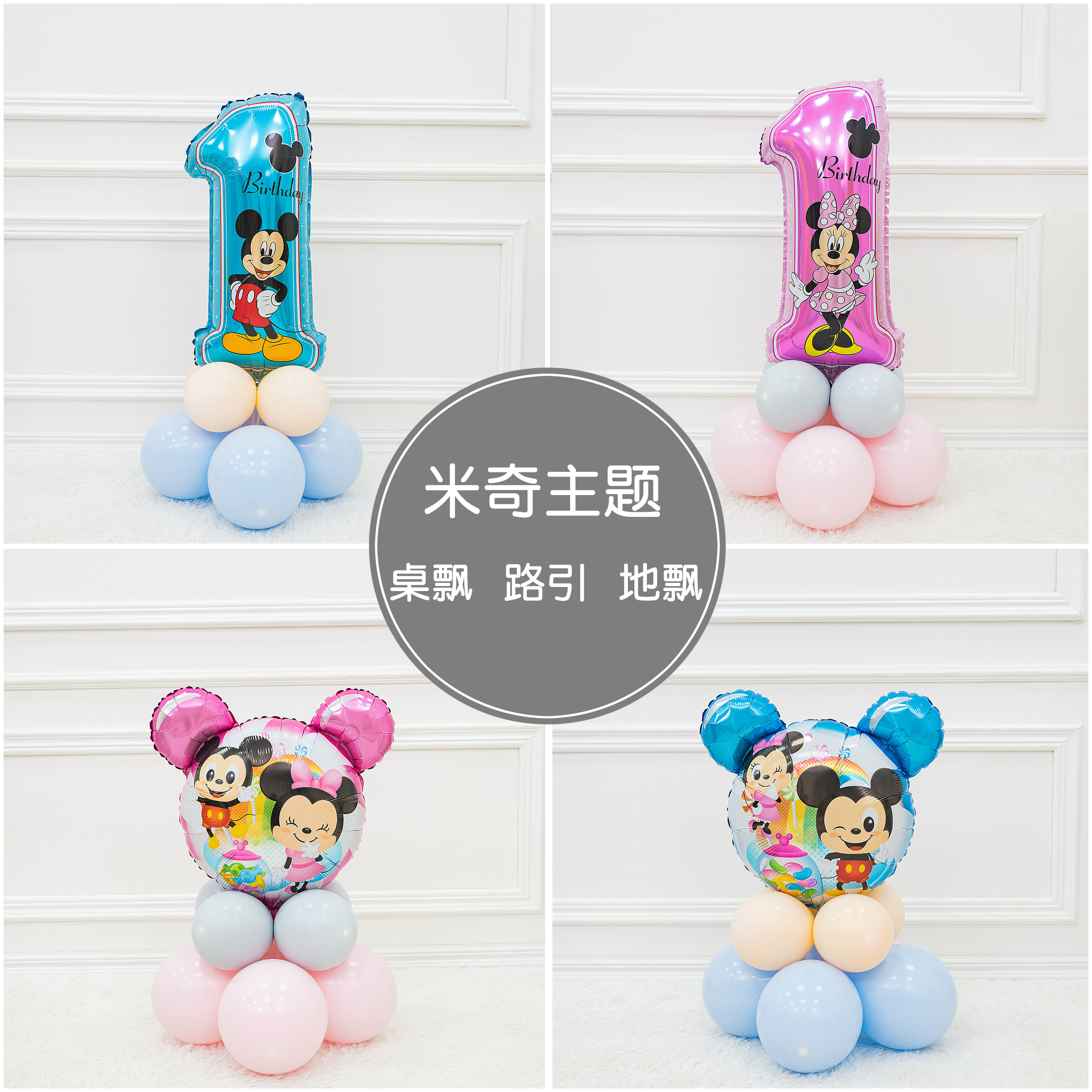 Mickey and Minnie theme party mouse baby one or two birthday scene layout decoration table floating aluminum film balloon