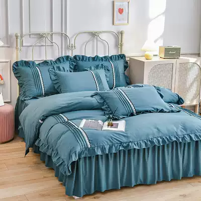Ruffle bed skirt four-piece cotton cotton belt bed cover cover style princess style pure color bedding four seasons