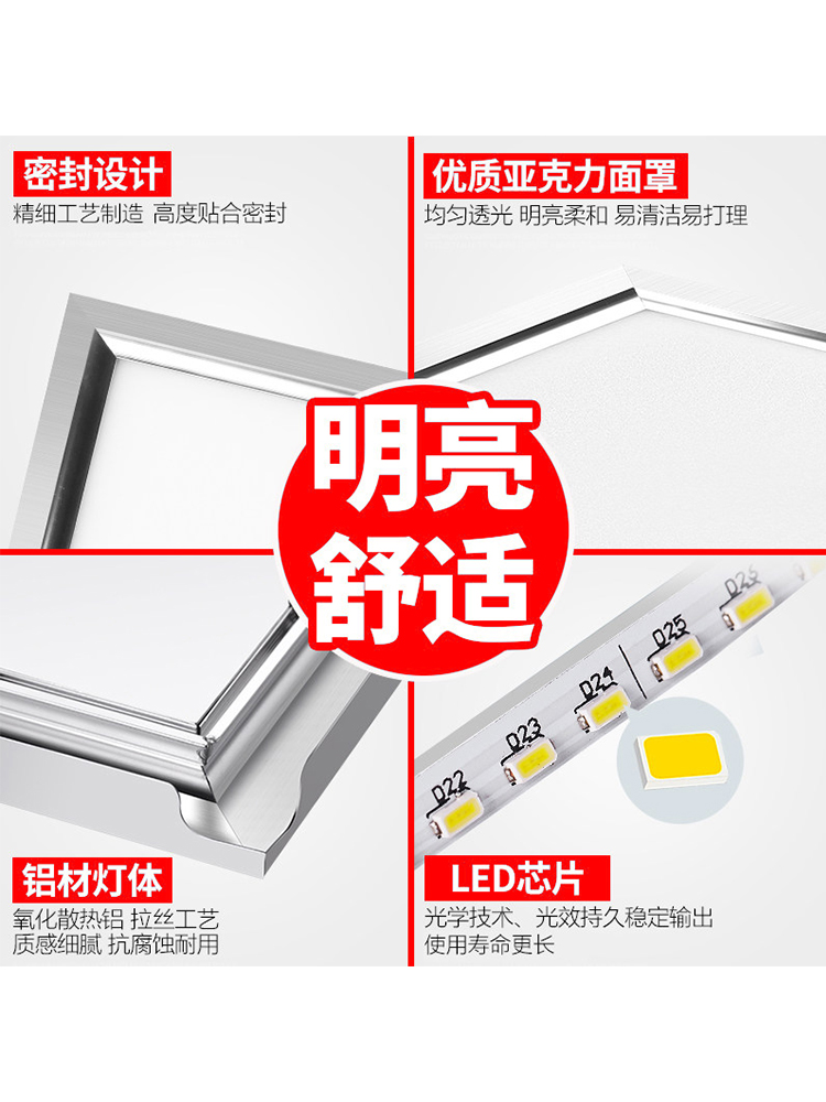 Integrated ceiling LED light kitchen dressing room light embedded aluminum gusset ceiling light 300x300x600 flat panel light