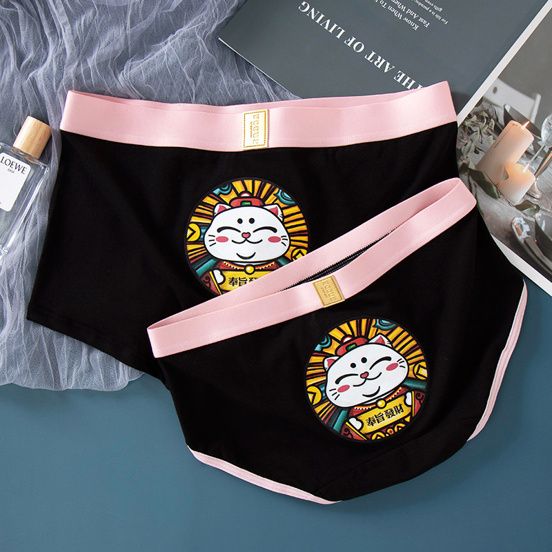 Couple underwear cotton cute creative cartoon royal cat men's boxer pants women's briefs breathable mid-waist large size suit