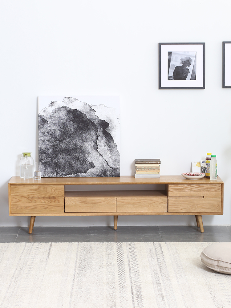 Nordic minimalist solid wood TV cabinet white oak cloud end TV cabinet tea table composition day style small family living room furniture