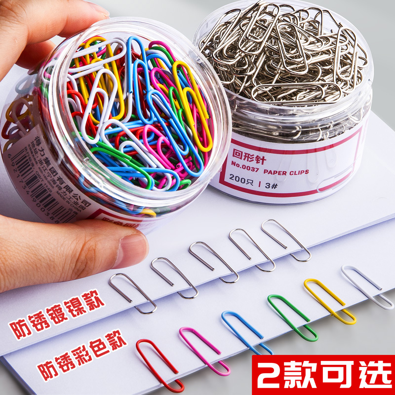 Deli paper clip Office supplies Paper clip creative cute storage box Large color bookmark clip Back-line clip Fixed back-type buckle Small rotary pin 600 wholesale stationery