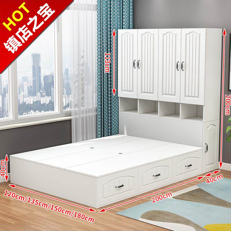 Bed and wardrobe combination set bed plus wardrobe integrated bedroom set home w multi-function bedside table small household